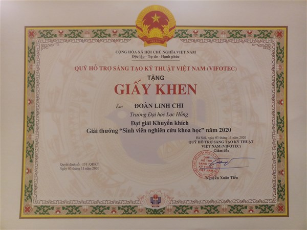 Năm học 2019-2020 Trường Đại học Lạc Hồng có 6 đề tài đăng ký tham gia xét Giải thưởng Sinh viên nghiên cứu khoa học cấp Bộ, trong đó có 01 đề tài đạt giải nhì và 02 đề tài đạt giải khuyến khích